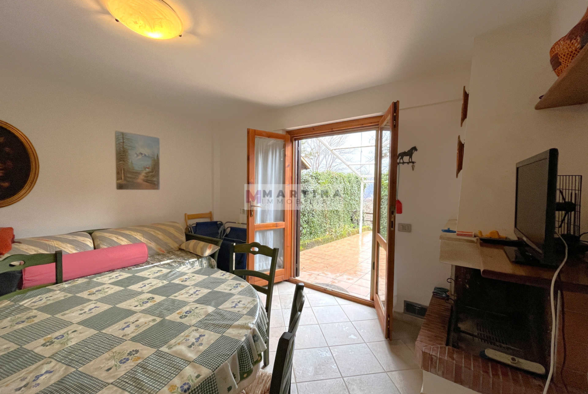 L’ingresso conduce a un’accogliente sala da pranzo con camino, mentre la cucina, separata, è ben organizzata negli spazi. Completa il piano terra un comodo bagno di servizio. Al primo piano si sviluppa la zona notte, composta da una camera matrimoniale, una cameretta versatile e un bagno. All’esterno, una piccola corte privata regala uno spazio riservato dove rilassarsi e godere appieno della quiete e del verde circostante. Completano la proprietà due garage che garantiscono massima comodità nella gestione quotidiana: uno di 15 mq e l’altro di 17 mq.