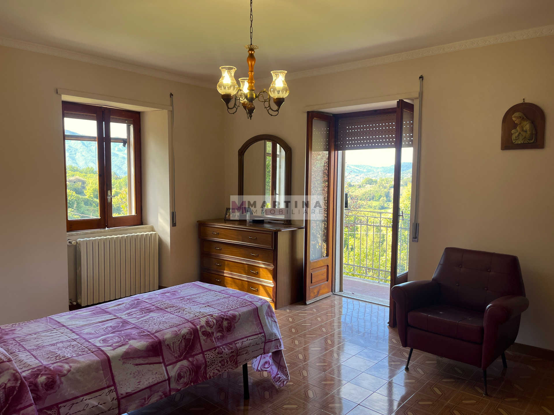 Al piano superiore, raggiungibile anche da un accesso indipendente, si sviluppa la zona notte composta da tre camere, di cui due con balcone panoramico, e un secondo bagno.
