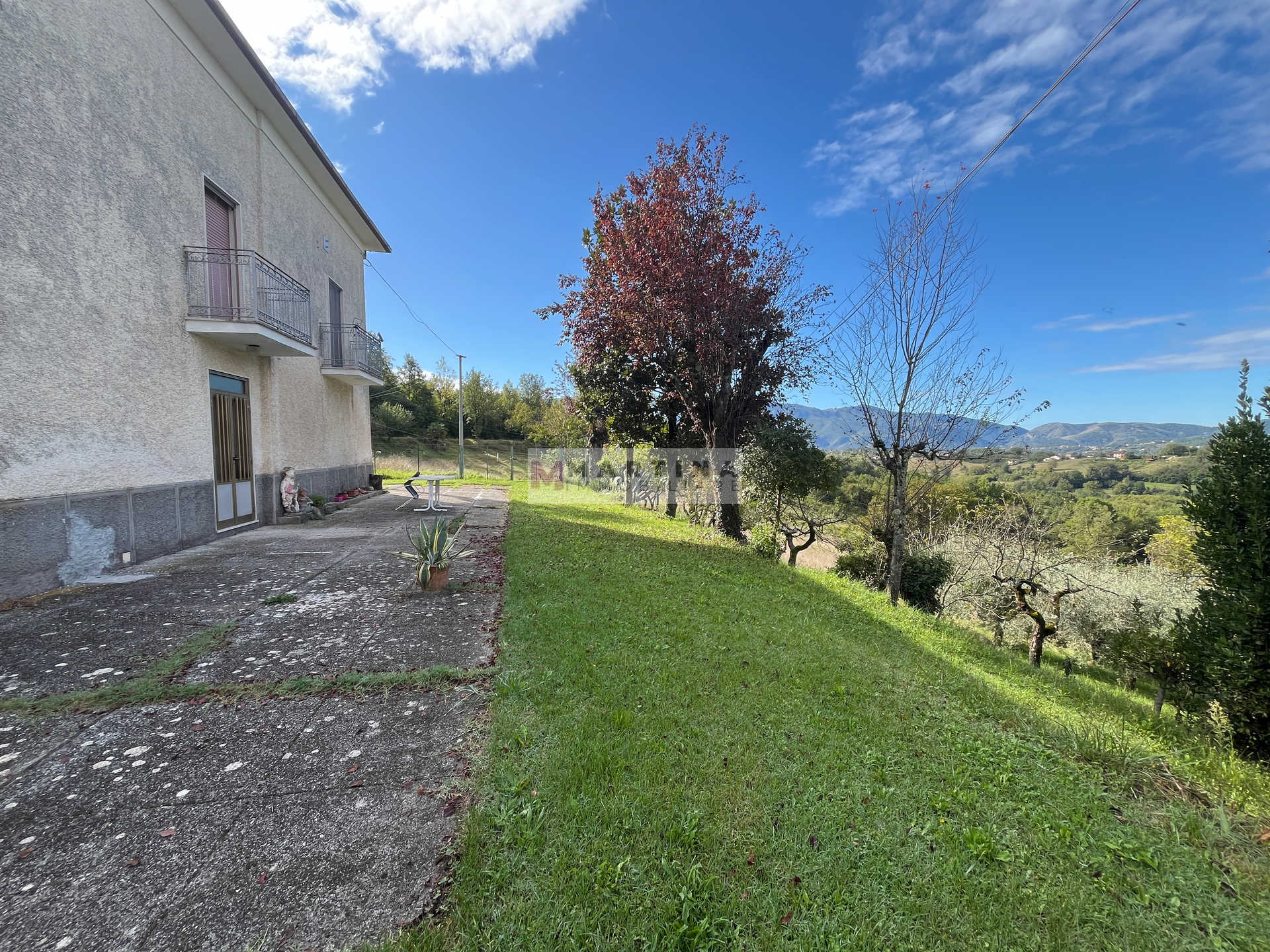 Nel paesaggio collinare di Alvito (FR), proponiamo una casa indipendente su due livelli, circondata da oltre un ettaro di terreno con ulivi.